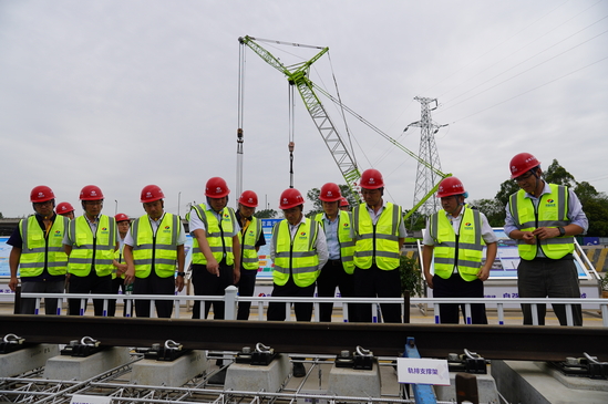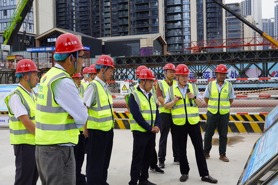 張勇一行先后到項目紅蓮站、紅秦豎井、官塘軌道鋪軌基地、官塘盾構(gòu)及慧心谷實地查看了工程推進情況,重點了解了成眉線下穿19號線暗挖施工及制約工程進度的慧心谷情況。