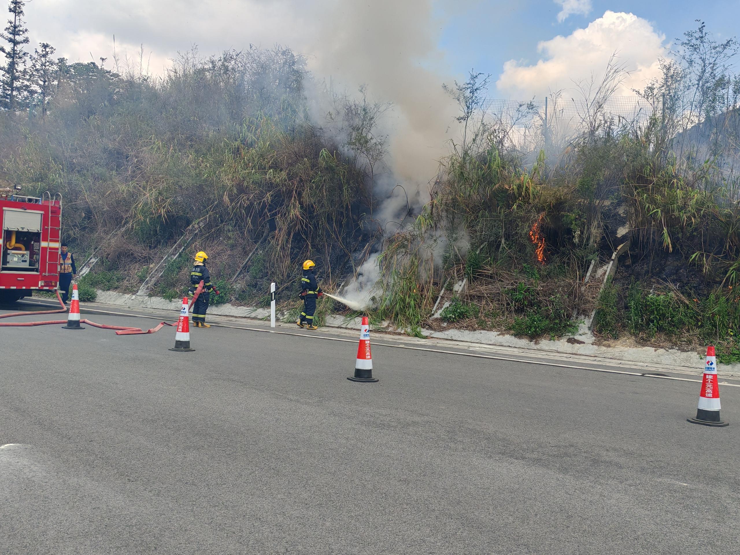 5月11日,中電建建(個)元高速運營管理部個舊南收費站右側(cè)邊坡突發(fā)火情,收費站工作人員迅速反應(yīng)、科學(xué)處置,協(xié)同消防、交警等部門30分鐘內(nèi)成功撲滅火源,有效保障高速公路通行安全及周邊環(huán)境。