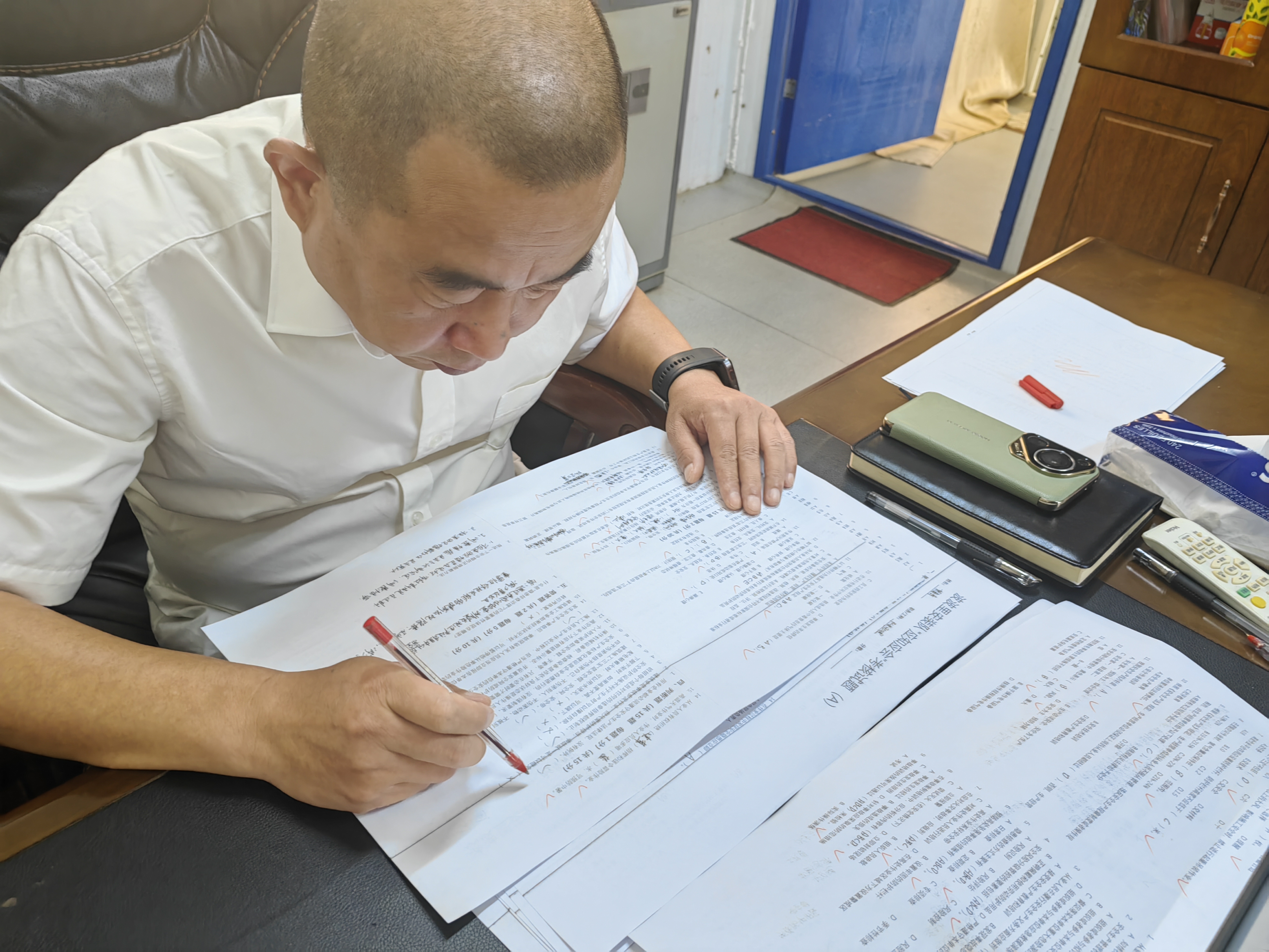 嚴(yán)抓細(xì)節(jié),織密安全“防護(hù)網(wǎng)”??荚囘^程中,監(jiān)考人員目光如炬,嚴(yán)守紀(jì)律紅線,營造出莊嚴(yán)肅穆的考試氛圍。職工們凝神聚思、謹(jǐn)慎作答,將平日里積淀的安全知識化作工整答案,字里行間盡顯專業(yè)素養(yǎng)與嚴(yán)謹(jǐn)風(fēng)范。此次考試既全面檢驗了項目全員的安全知識功底,也為日常安全管理工作進(jìn)行了一次深度“體檢”,更是對日常安全管理工作的深度復(fù)盤。