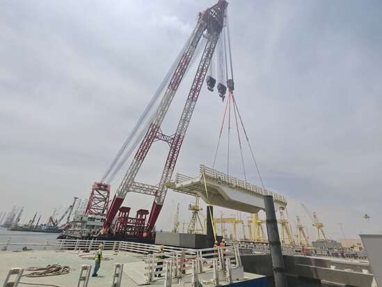 交通橋的成功安裝,不僅為碼頭與服務(wù)駁船之間搭建起穩(wěn)定可靠的運輸通道,也為后續(xù)設(shè)備調(diào)試、運行維護(hù)提供了堅實保障。該節(jié)點的順利完成,充分體現(xiàn)了水電五局在海外大型海工項目中的綜合實力與責(zé)任擔(dān)當(dāng)。